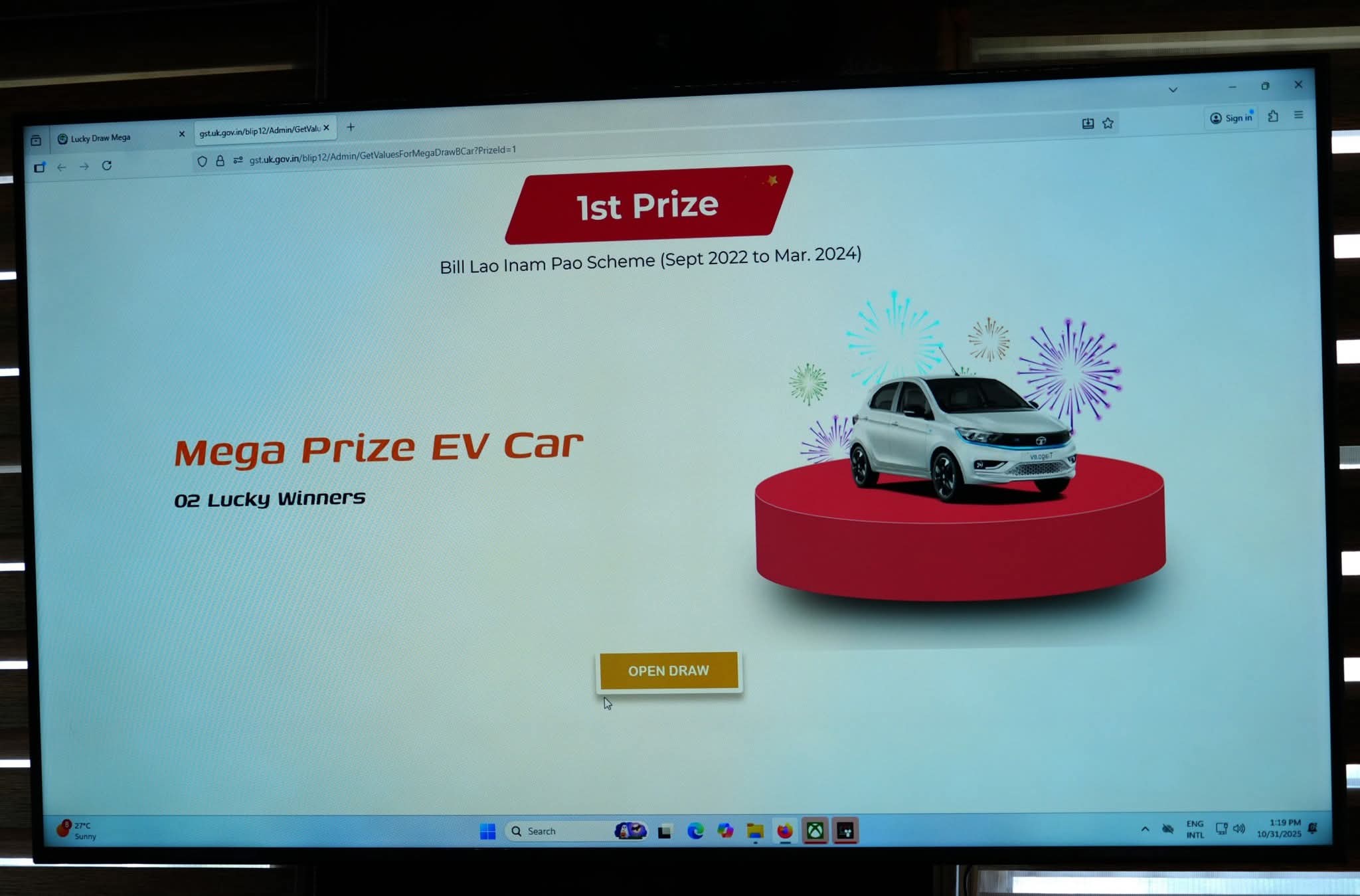 सचिवालय में ‘बिल लाओ, इनाम पाओ’ योजना के मेगा लकी ड्रॉ का शुभारंभ किया। इस दौरान लकी ड्रॉ में इलेक्ट्रिक कार जीतने वाली नैनीताल जनपद निवासी सोनिया और टिहरी जनपद के जसवाल रावत से फोन पर वार्ता कर उन्हें शुभकामनाएं दी। टैक्स के प्रति जनता को जागरूक करने और अनियमितता पर रोक लगाने के उद्देश्य से आगे भी यह योजना जारी रहेगी।