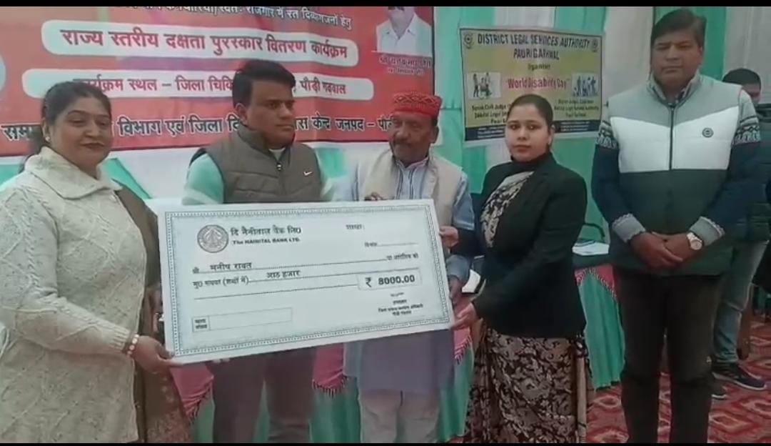 विश्व दिवंगत दिवस के उपलक्ष्य में जिला चिकित्सालय पौड़ी में समाज कल्याण विभाग के तत्वाधान में दिव्यांगजनों को सम्मानित करने का कार्यक्रम आयोजित किया गया। कार्यक्रम में सरकारी विभागों में कार्यरत दिव्यांग कार्मिकों के साथ ही सामाजिक क्षेत्र में उल्लेखनीय योगदान देने वाले कुल 9 दिव्यांगजनों को सम्मानित किया गया। सभी सम्मानित व्यक्तियों को विभाग की ओर से 8-8 हजार रुपये की प्रोत्साहन राशि भी प्रदान की गई। इस अवसर पर मुख्य अतिथि विधायक राजकुमार पोरी ने कहा कि दिव्यांगजनों का जज्बा समाज के लिए प्रेरणा का स्रोत है। उन्होंने कहा कि आज जिस तरह से दिव्यांगजन विभिन्न क्षेत्रों में महत्वपूर्ण भूमिका निभा रहे हैं, वह समाज के लिए मिसाल है। ऐसे सम्मान समारोह न केवल उनका उत्साह बढ़ाते हैं, बल्कि अन्य लोगों को भी समाजहित में कार्य करने के लिए प्रेरित करते हैं। सचिव, जिला विधिक सेवा प्राधिकरण नाजिश कलिंग ने भी कार्यक्रम को संबोधित करते हुए कहा कि ऐसे आयोजन दिव्यांग व्यक्तियों में आत्मविश्वास बढ़ाते हैं और उन्हें समाज का अभिन्न अंग होने का एहसास दिलाते हैं। उन्होंने बताया कि विधिक सेवा प्राधिकरण द्वारा भी दिव्यांगजनों के उत्थान और प्रोत्साहन हेतु लगातार कार्य किए जा रहे हैं।