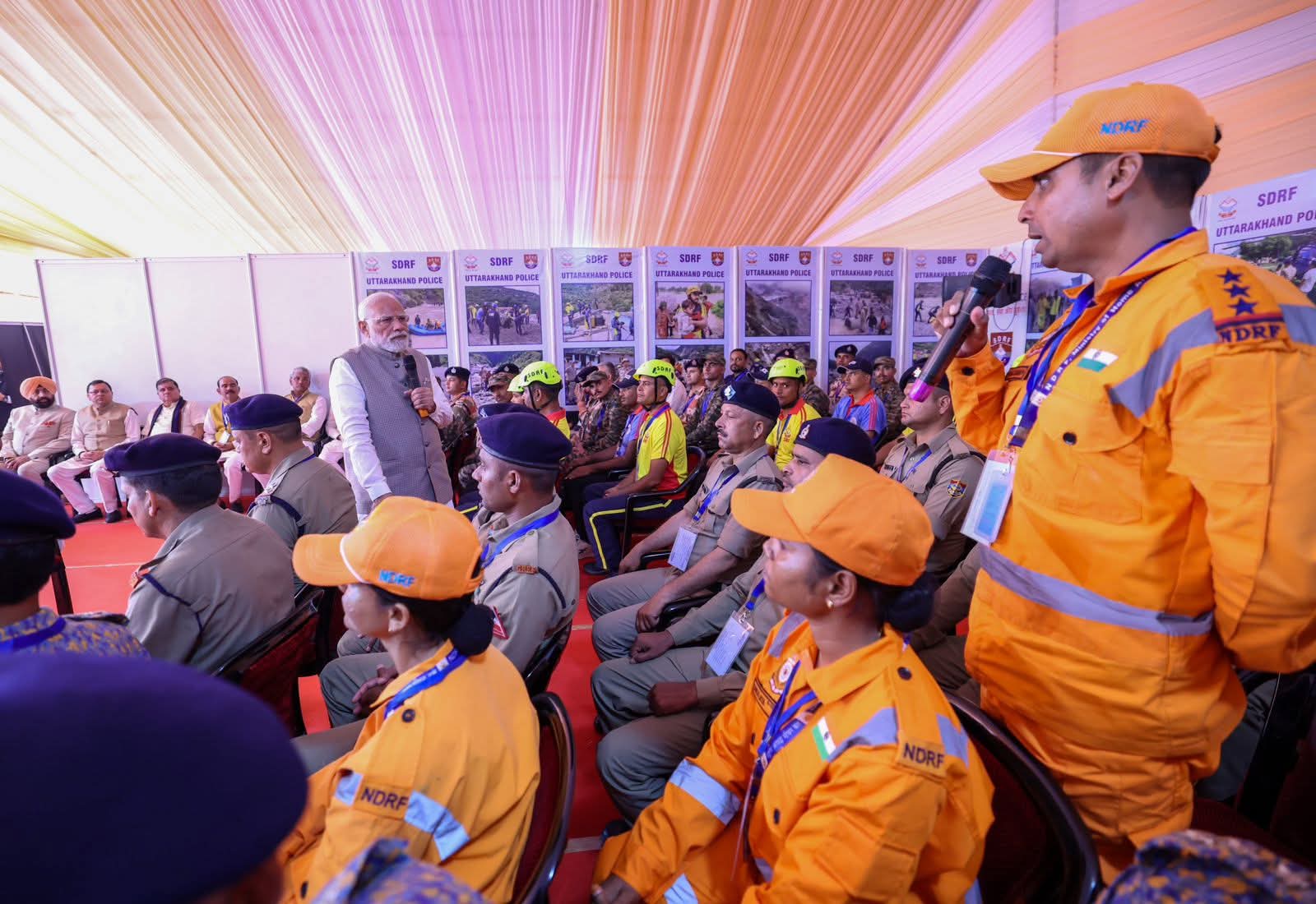 प्रधानमंत्री Narendra Modi ने देहरादून में National Disaster Response Force, India, SDRF Uttarakhand Police एवं आपदा मित्र टीम के साथ संवाद किया। इस दौरान उन्होंने प्रदेश के आपदा प्रभावित क्षेत्रों में इन टीमों द्वारा किए गए उत्कृष्ट कार्यों की सराहना की और उनके अनुभवों को सुना।